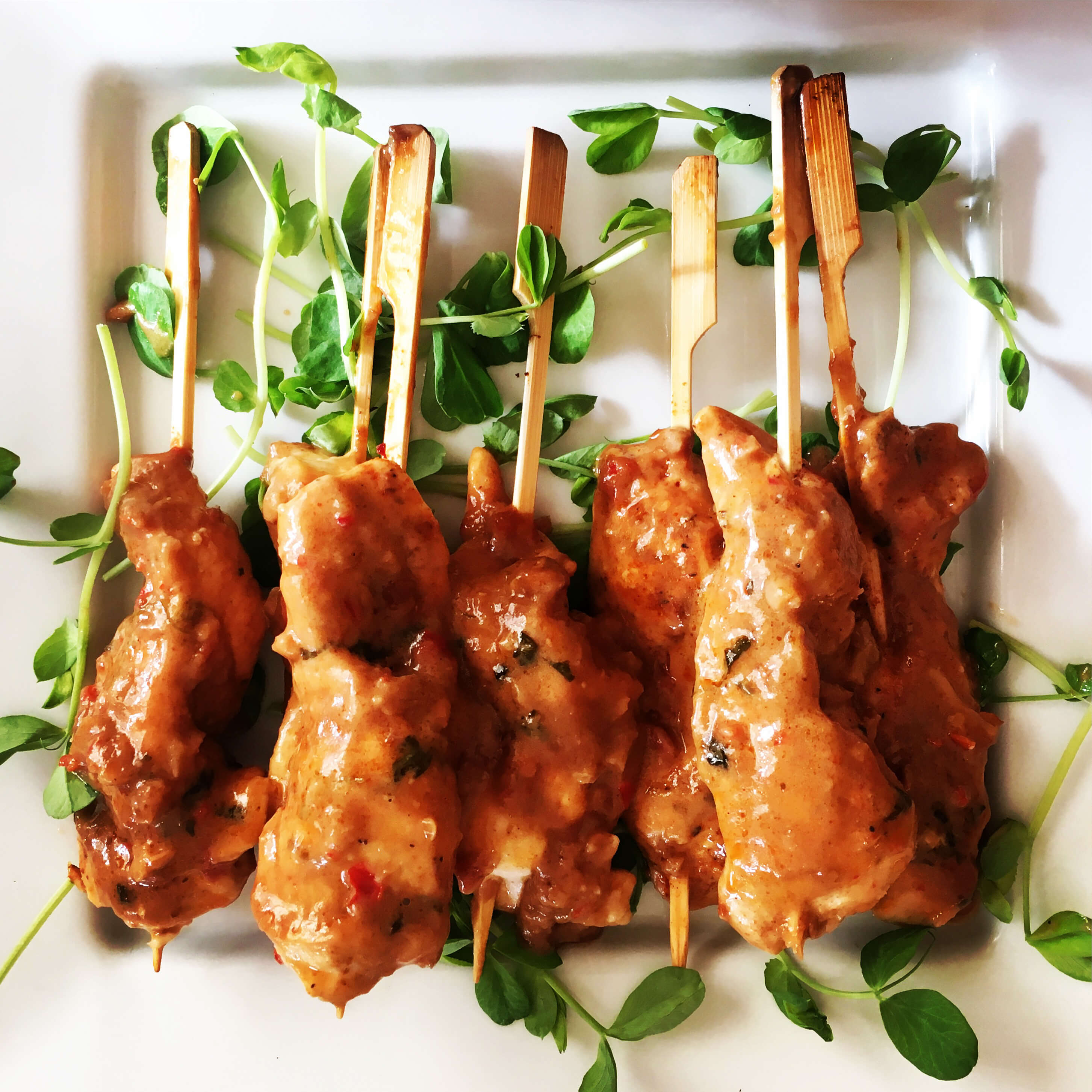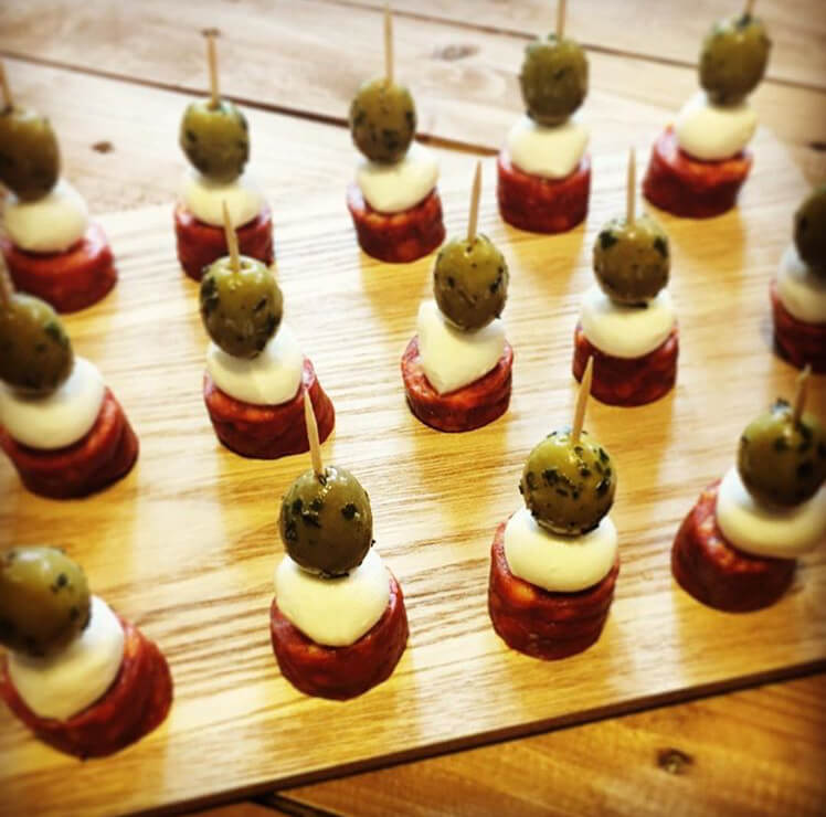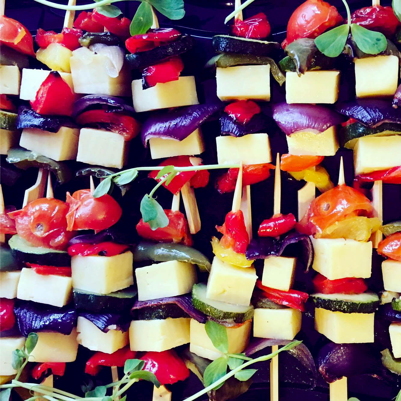 Sweet Chilli Felafel, Mozzarella & Roasted Pepper skewers