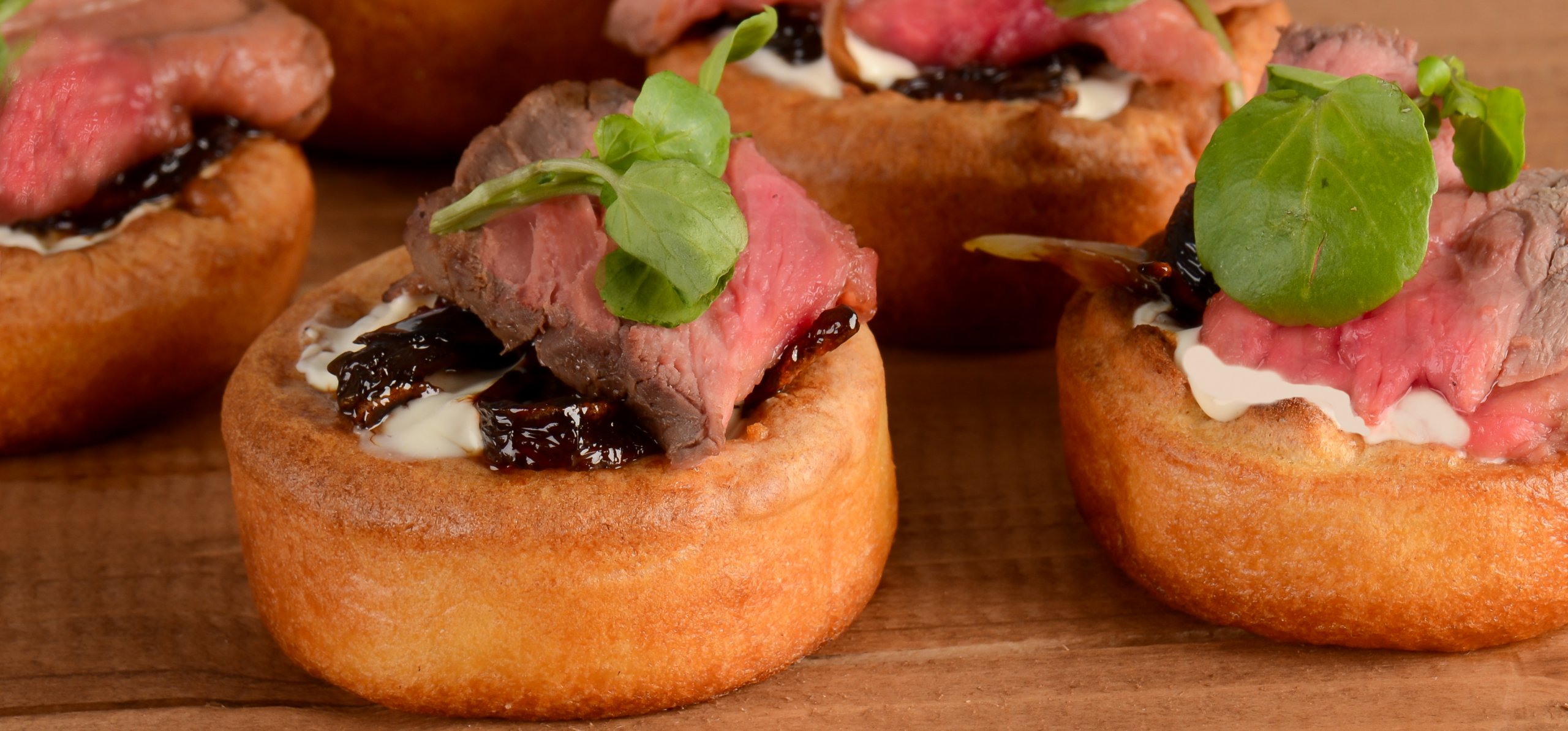 Mushroom Caramelised onion, Crème Fraiche Yorkshire Puddings