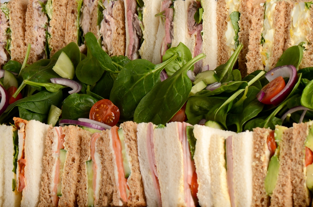 A selection of delicious sandwich fillings on pumpkin seeded and white bread (both meat & vegetarian)